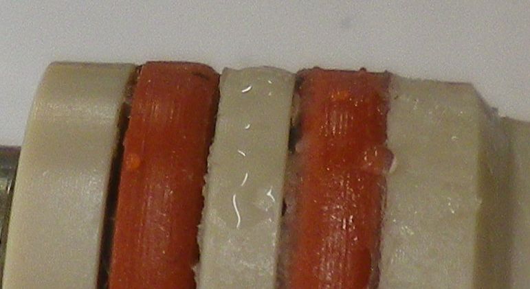 未強化のPEEKは切削をしても刃物の摩耗がとても少ない。このことは寸法を出しやすいことを意味します。